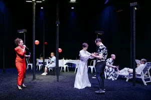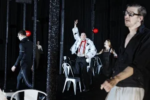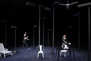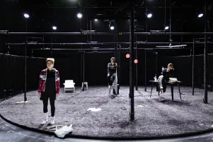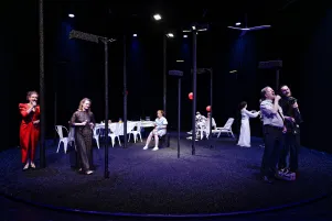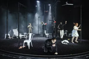 Jakob Nolte holt Maxim Gorkis "Kinder der Sonne" in unsere Gegenwart, er treibt den Stoff lakonisch ins Komische und fragt, welche Rolle das Bildungsbürgertum in den politisch brisanten Prozessen unserer Gesellschaft noch spielt. Laura Linnenbaum inszeniert diese Gesellschaftals als eine bereits unbehauste, die sich auf einer längst verbrannten Erde einrichtet, während sie sich nurmehr im Licht von Scheinwerfern sonnt.